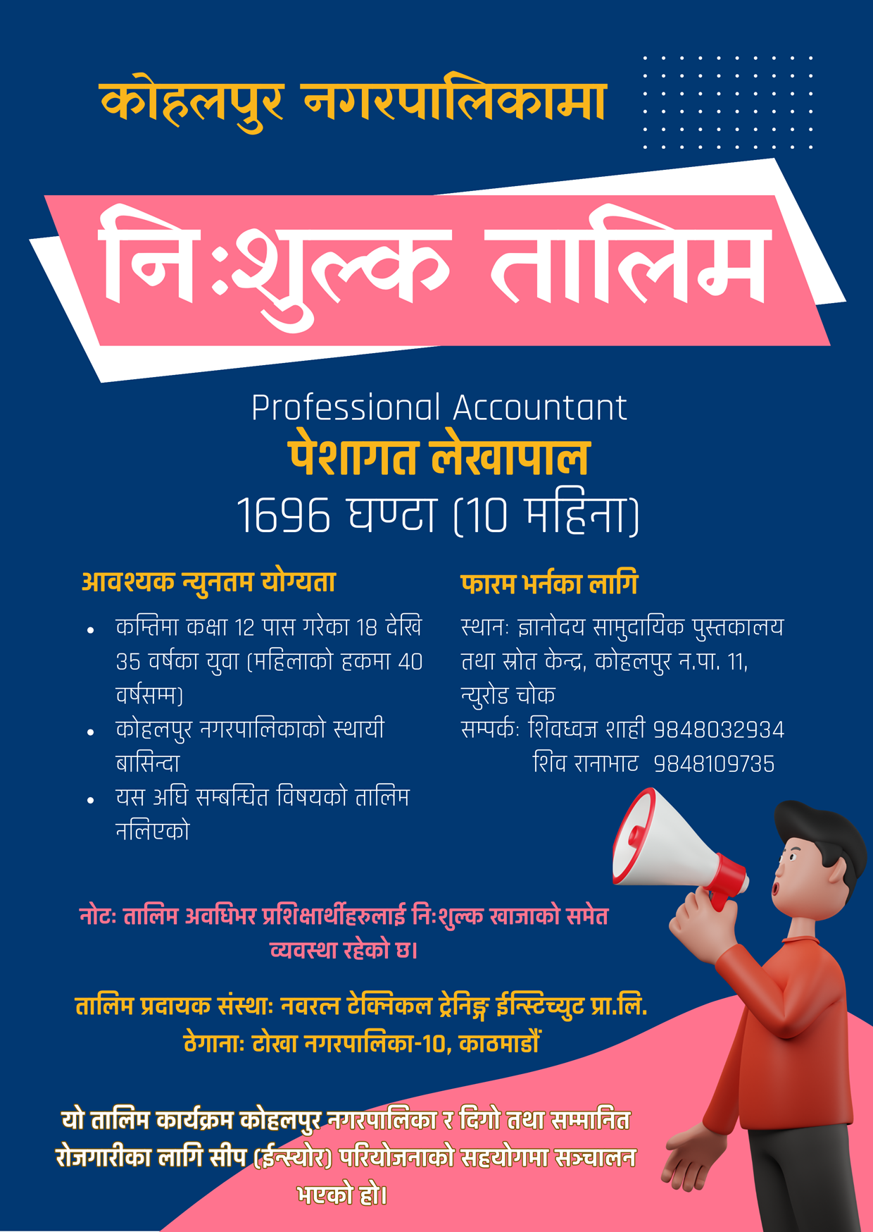 कोहलपुर नगरपालिकामा कार्यगत अभ्यास सहितको तालिम कार्यक्रम अन्तर्गत पेशागत लेखापाल (Professional Accountant) तह २ को निःशुल्क तालिमको अवसर